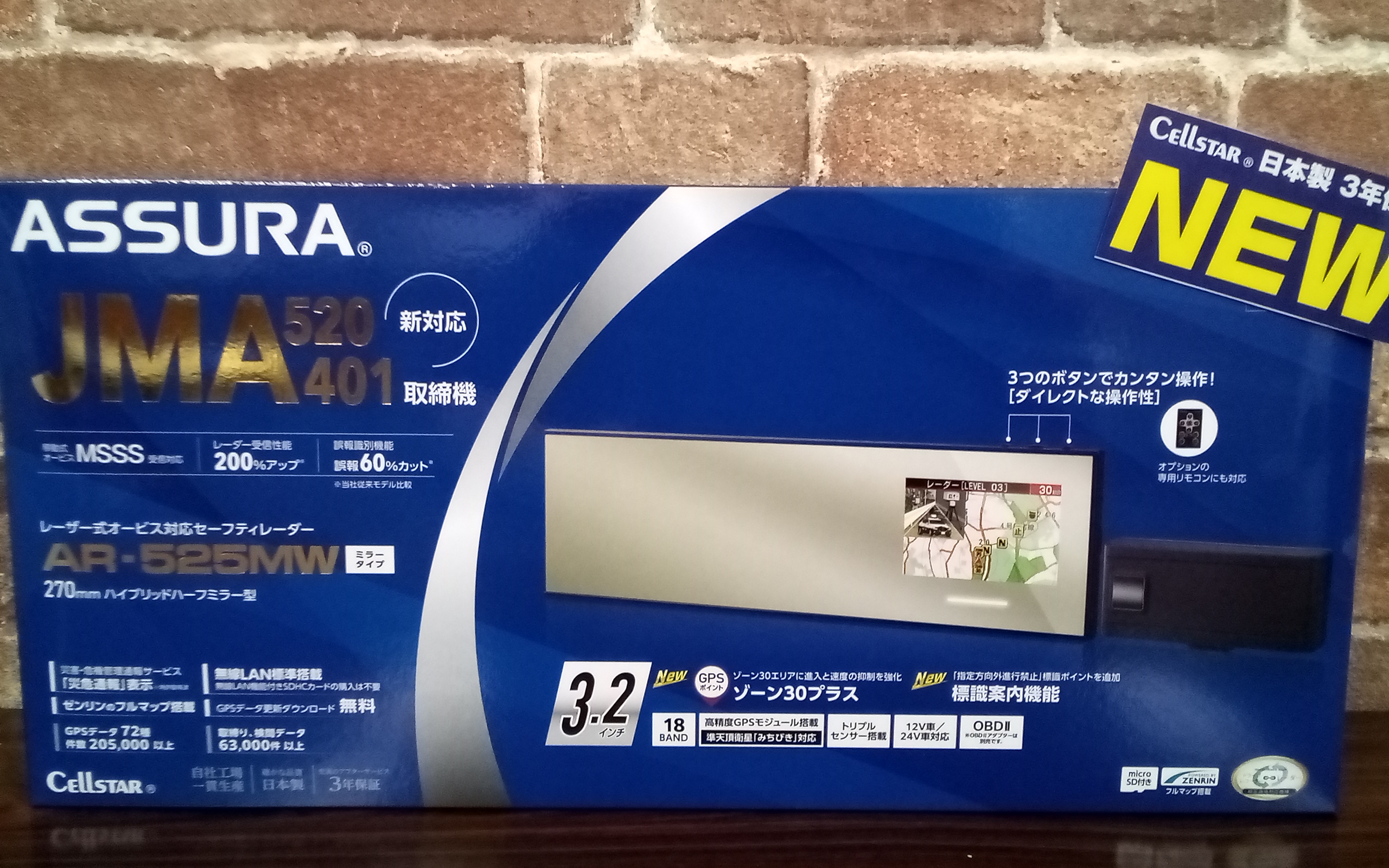 通常全面ミラーとして使用可能、必要な時だけ画面に表示【3.2インチ高彩度MVA液晶搭載】